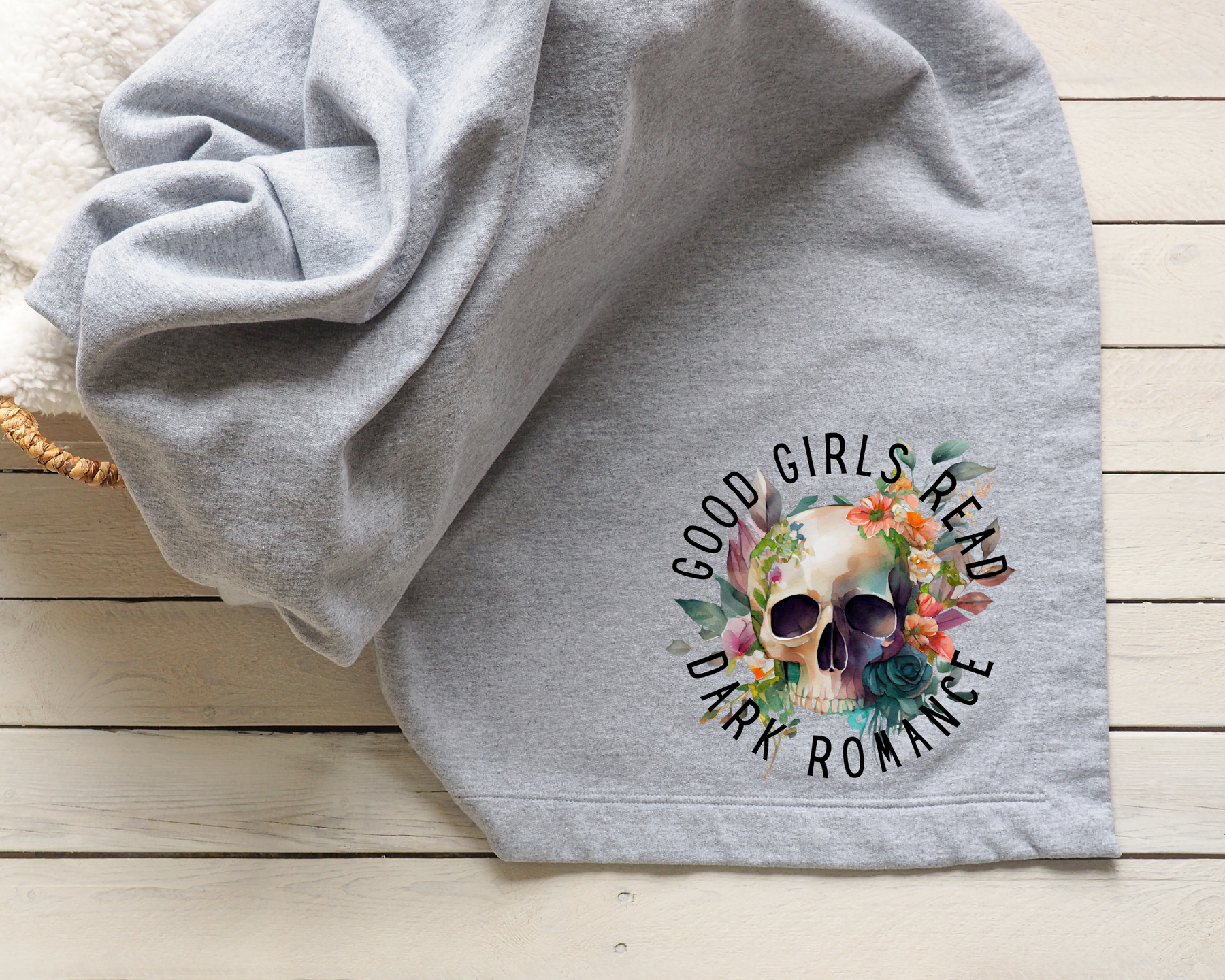 Wrap yourself in pure comfort with our Good Girls Read Dark Romance Sweatshirt Blanket—the perfect excuse to stay snuggled up with your favorite book. Crafted from Gildan's durable 50/50 blend, this cozy companion measures a generous 50"x60", giving you plenty of room to sprawl out and get lost in a good story. Whether you're curling up on the couch, lounging in bed, or settling into your reading nook, this sweatshirt blanket delivers the softness and warmth you crave. Because every day is a good day when you're reading in ultimate comfort.