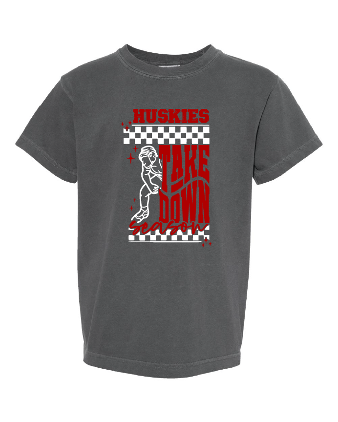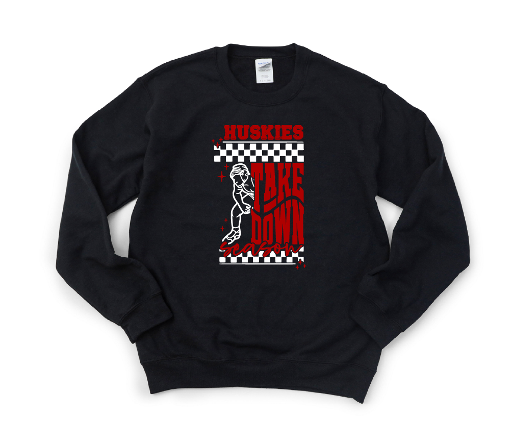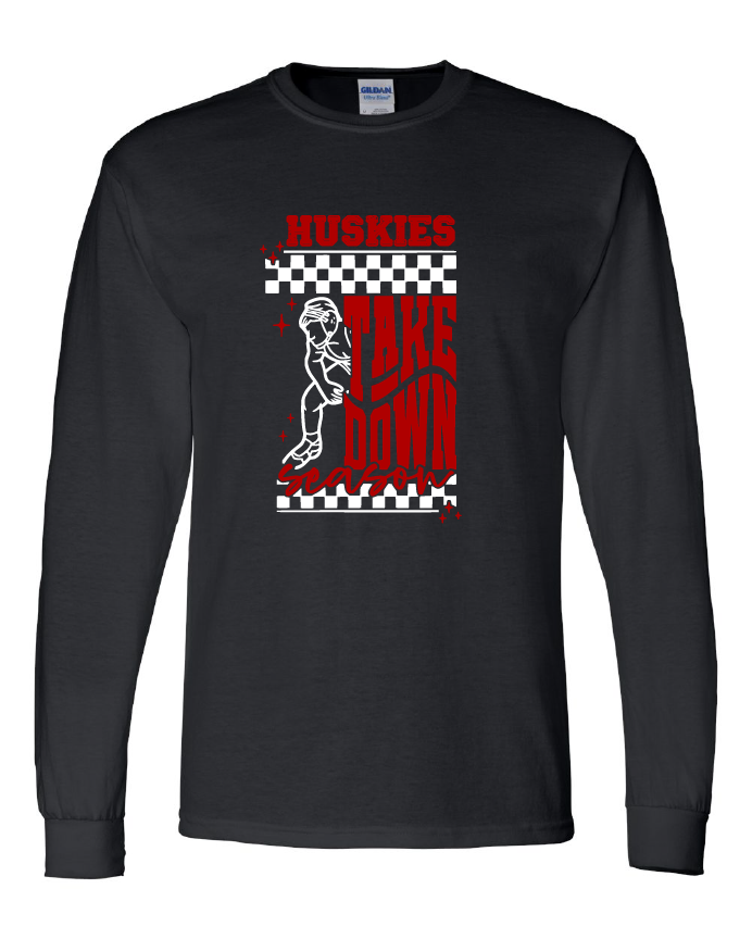 Show your spirit with the Huskies Takedown Design, available on both tees and sweatshirts. Perfect for cheering on your favorite Highland wrestler, this playful design adds energy and pride to your game day outfit. Comfortable and fun, it’s your go-to gear for showing support in style.