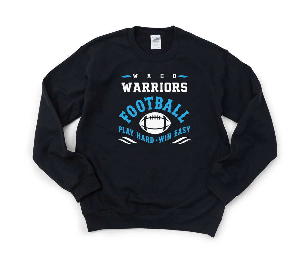 Show off your team spirit with the Play Hard Win Easy Football Print, available on tees, hoodies, and sweatshirts. Make it truly yours by customizing with an optional number on the front, plus an optional name and number on the back. Whether you're on the field or cheering from the sidelines, this playful design brings fun and personality to your game-day gear.